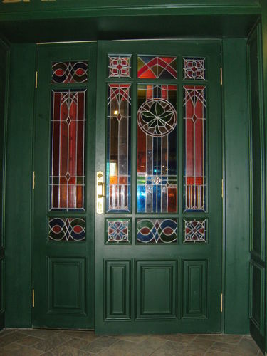 В качестве отделки используются самые разные материалы — МДФ, натуральный шпон, искусственная кожа, ламинат. Декорируются панели кованными решетками, литьем, филенками, резными элементами.